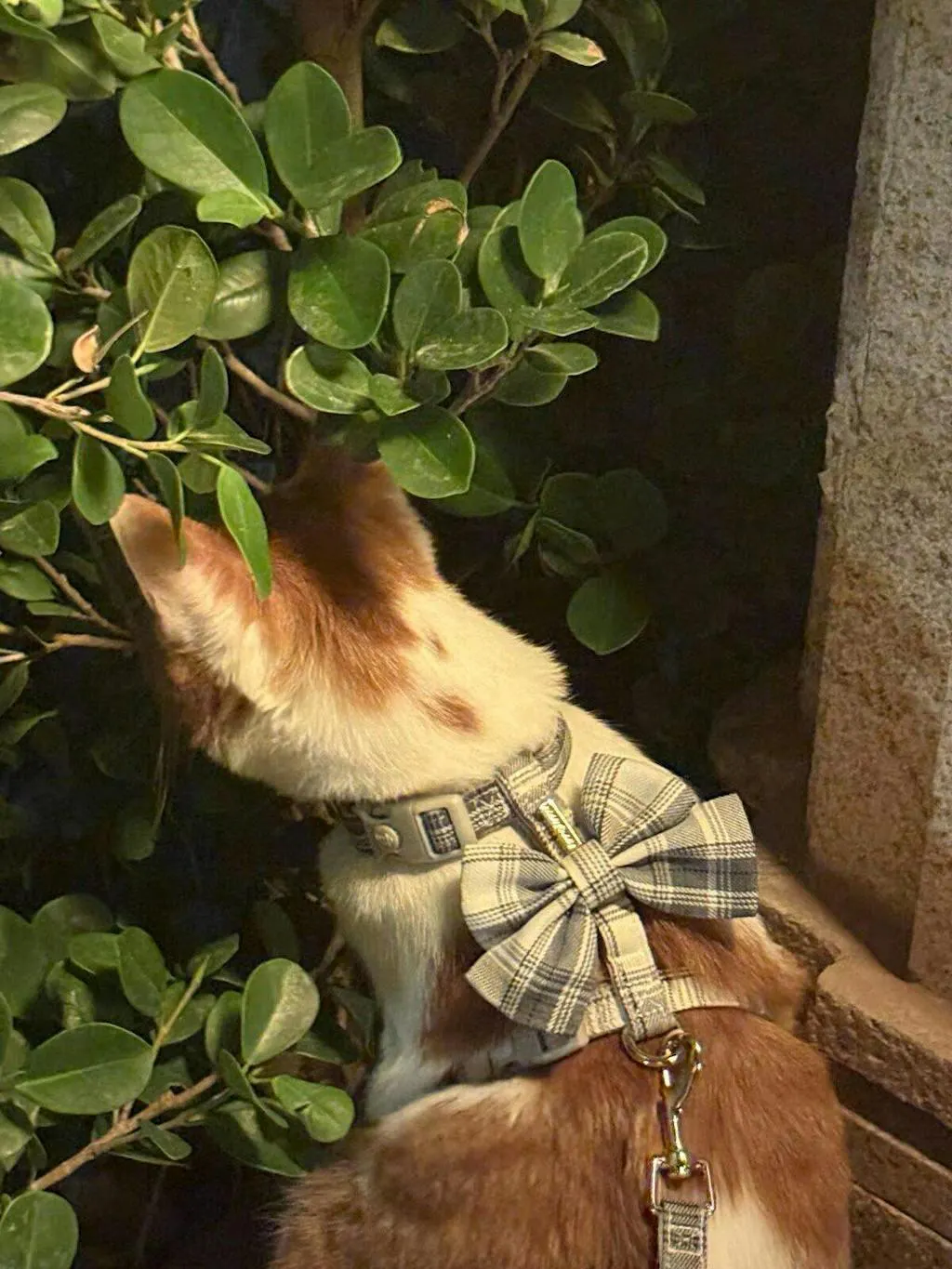 Introducing Catvera Bow Tie Cat Harness, the perfect combination of adorable bow tie design and escape-proof security for your feline companion. This charming harness features a distinctive bow tie on the back that makes your cat the center of attention during every walk, while ensuring complete safety with its durable construction and secure fitting system.